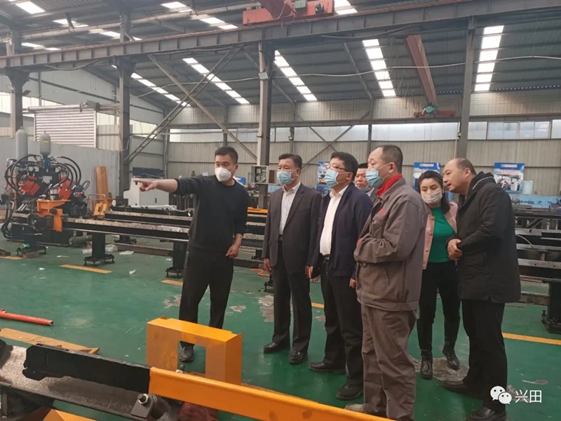 爾后,平陰縣領(lǐng)導(dǎo)一行來(lái)到公司工廠生產(chǎn)車間,現(xiàn)場(chǎng)考察了工廠的復(fù)工復(fù)產(chǎn)情況、員工到崗情況、技術(shù)研發(fā)情況和口罩機(jī)的研發(fā)生產(chǎn)情況。