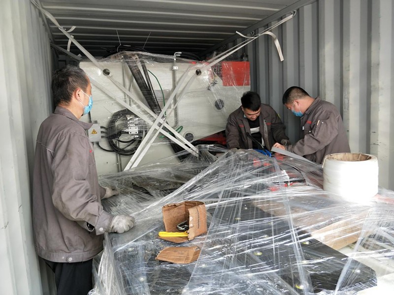 今天裝箱的是為客戶量身定制的加大型數(shù)控液壓板材沖孔機。